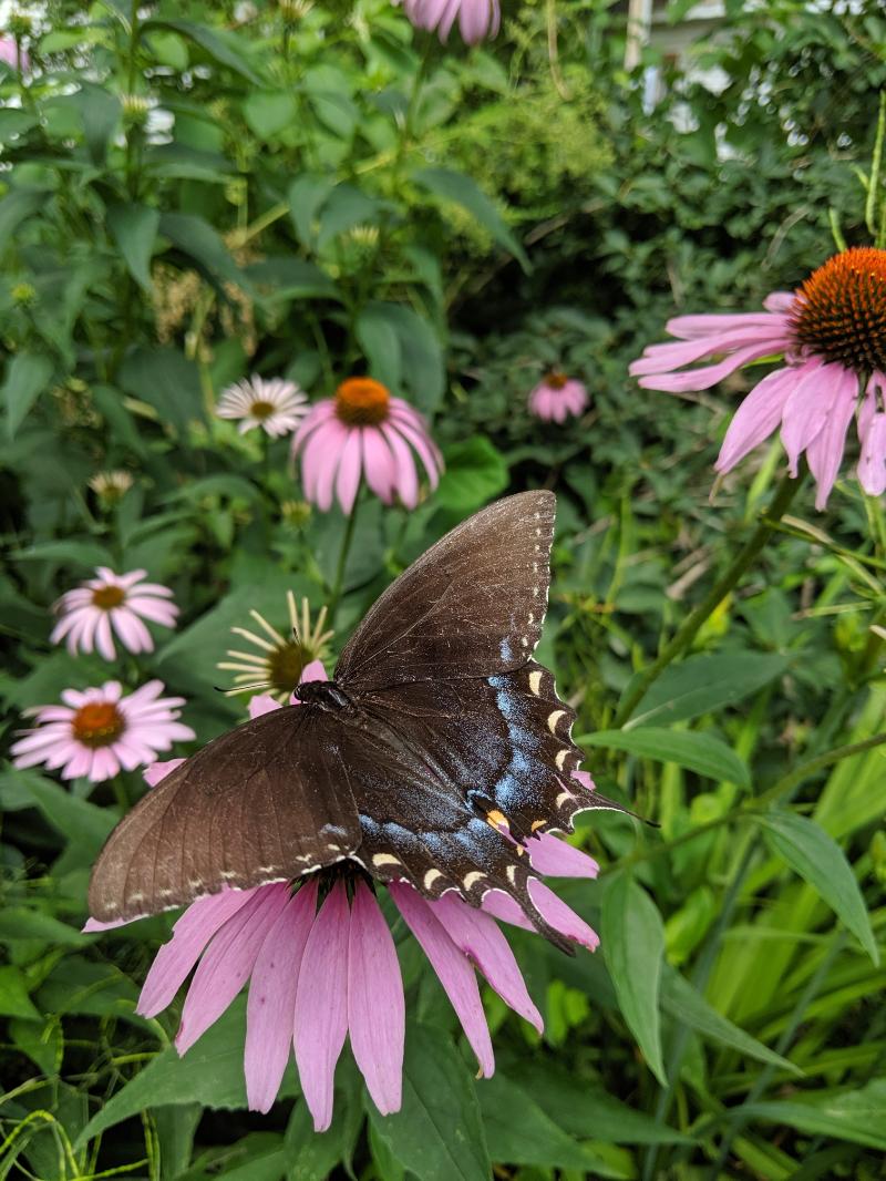 Much research has investigated how we can help support pollinators experiencing great declines over the last few decades. It has become more and more evident that native plants are the most important element in any attempts to support our native pollinators. Adults are able to feed on many types blooming plants, but it is native plants that provide the greatest benefits to pollinators in both their adult and early stages, providing food and places for them to comfortably shelter as they progress to their adult stages.